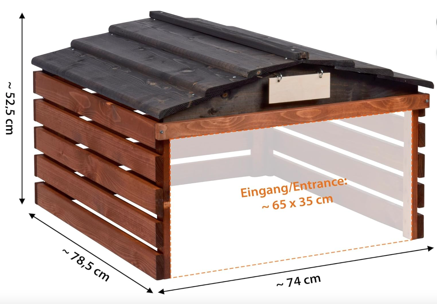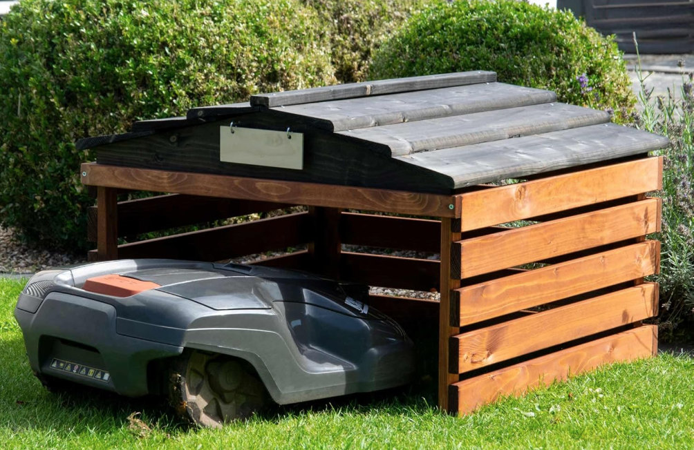 Garage pour Robot Tondeuse en Bois avec Toit Amovible, abri pour Robot à Gazon, avec Panneau Personnalisable, 78,5 x 74 x 52,5 cm, Marron
